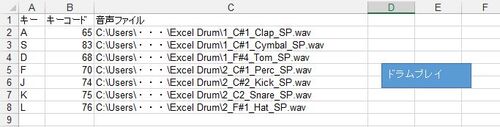 好きなんです、ドラム(1回しか叩いたこと無いけど)。 叩きたくなりますよね、ドラム(ドラムマニアは何度か)。 無理からにExcelで作ってみました、ドラム(不安定だけど)。 どんなもの 事前にキーボードのキーと再生する音の組み合わせを決めておきます。 指…